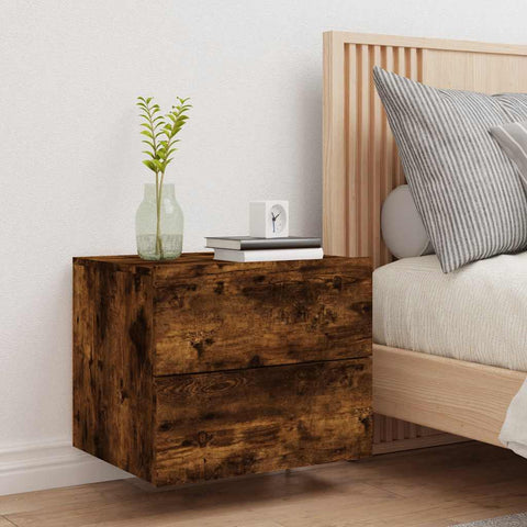 Wall-mounted Bedside Cabinet with LED Lights Smoked Oak 836820