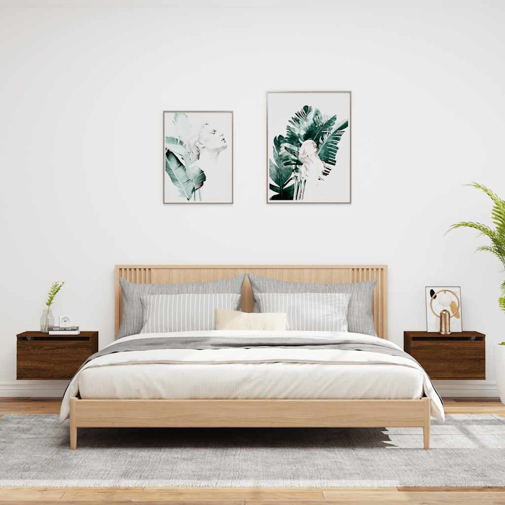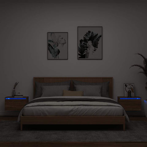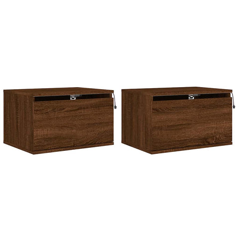 Wall-mounted Bedside Cabinets with LED Lights 2 pcs Brown Oak 836839
