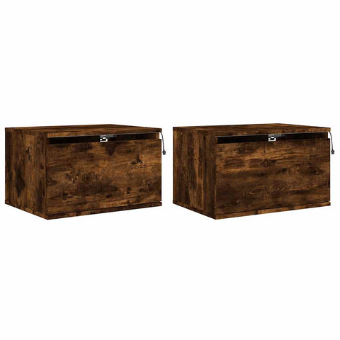 Wall-mounted Bedside Cabinets with LED Lights 2 pcs Smoked Oak 836835