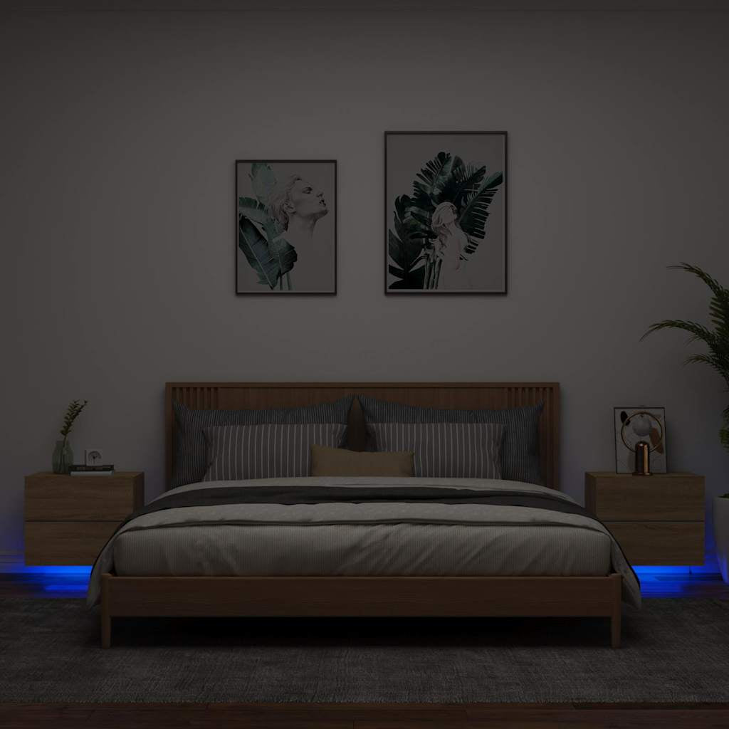 Wall-mounted Bedside Cabinets with LED Lights 2 pcs Sonoma Oak 836817