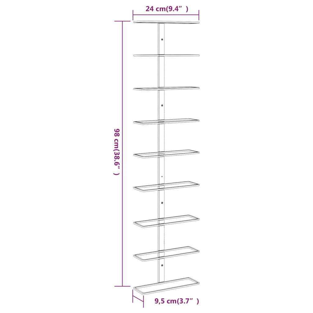 This wall-mounted wine rack is convenient to help you organize and store your favourite wines. It holds up to 9 bottles of wine. Modern design: This wine rack is also a trendy addition to store wine in modern kitchens, pantry and bars.High quality: The bottle holder is made of spray-coated iron, making it extremely durable and easy to maintain! Additionally, its surface is very smooth, which can prevent scratching the bottle.Easy to assemble: With the included mounting materials, this alcohol rack can be easily attached to the wall.