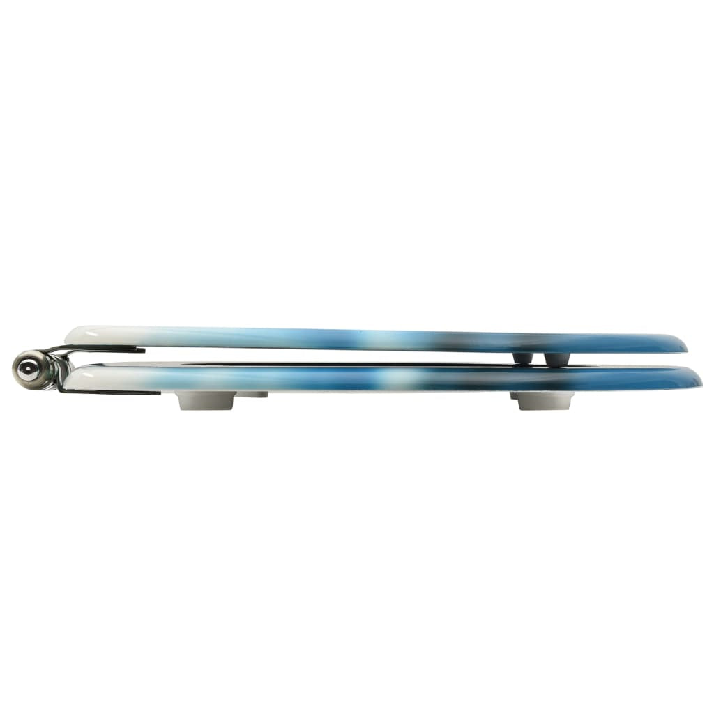 This toilet seat is a true eye-catcher in any bathroom. It adds a touch of an intriguing style to your bathroom and is considerably durable. Its MDF lid and seat are exceedingly sturdy and hard-wearing. The hinges are made of extra strong chrome-zinc alloy. This toilet lid has a soft-close function, which means it closes slowly and quietly. This WC seat fits all common toilet bowls as the width of the hinges can be adjusted from 12 to 20 cm.