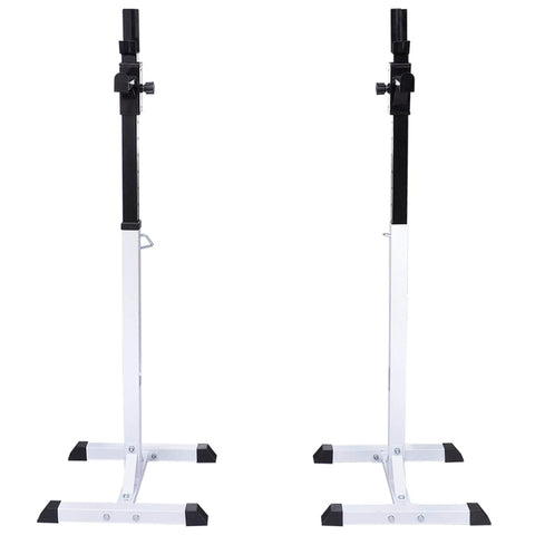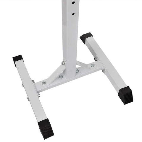 This robust and stable barbell/squat rack with a barbell and dumbbell set is perfect for your home gym! In combination with a workout bench, it will be suitable for bench press training as well as squats. This stable barbell rack is suitable for barbell bars with a diameter of approximately 45-50 mm. It has a rugged steel construction and a maximum load capacity of 80 kg. The rack is adjustable in height and suitable for almost any body size and various exercises. Moreover, it is compact and space saving. The barbell and dumbbell set features solid chrome-plated bars with quick-action spring collars (for barbell bar), non-slip knurled grips, and fluted star-screw caps (for dumbbell bars) for secure attachment of the weight plates. You can work out without worrying about safety issues. The weight plates are made with a robust polyethylene casing. They can be combined in various ways for different training purposes. Delivery includes a barbell/squat rack, a barbell bar, two dumbbell bars, six 1.25 kg weight plates, four 2.5 kg weight plates, four 5 kg weight plates, two 10 kg weight plates, four caps and two spring collars.