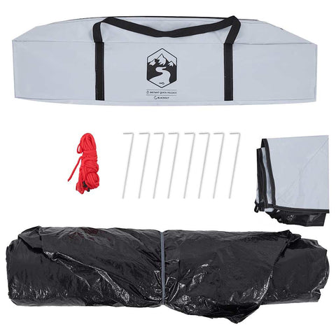 This family tent with a modern look protects you from the unpleasant weather and provides a comfortable place for anywhere adventures. All-round waterproof design: This camping tent, made from polyester with a PU coating, is waterproof and wind resistant. The taped seams effectively prevent rainwater infiltration, while the heavy-duty ground sheet helps maintain a dry and comfortable interior.White blackout fabric: The specially designed tent fabric blocks out 99% daylight, ensuring a cooler and more comfortable sleep environment. Say goodbye to early morning sunlight disturbances and enjoy a restful night's sleep.Quick-release system: Set up the tent effortlessly with the quick-release system! Lay the tent down, extend the pre-assembled poles until they lock into place, and you're all set!Detachable rainfly: The detachable rainfly can be attached to the tent's top for weather protection and privacy.Good ventilation & mosquito protection: The mesh walls not only offer excellent ventilation but also effectively keep insects at bay, ensuring a comfortable and bug-free experience for users.Convenient electrical cord access: The E-port allows you to easily connect an extension cord from an external power source to your tent. Warning:Keep all flame and heat sources away from this product fabric.