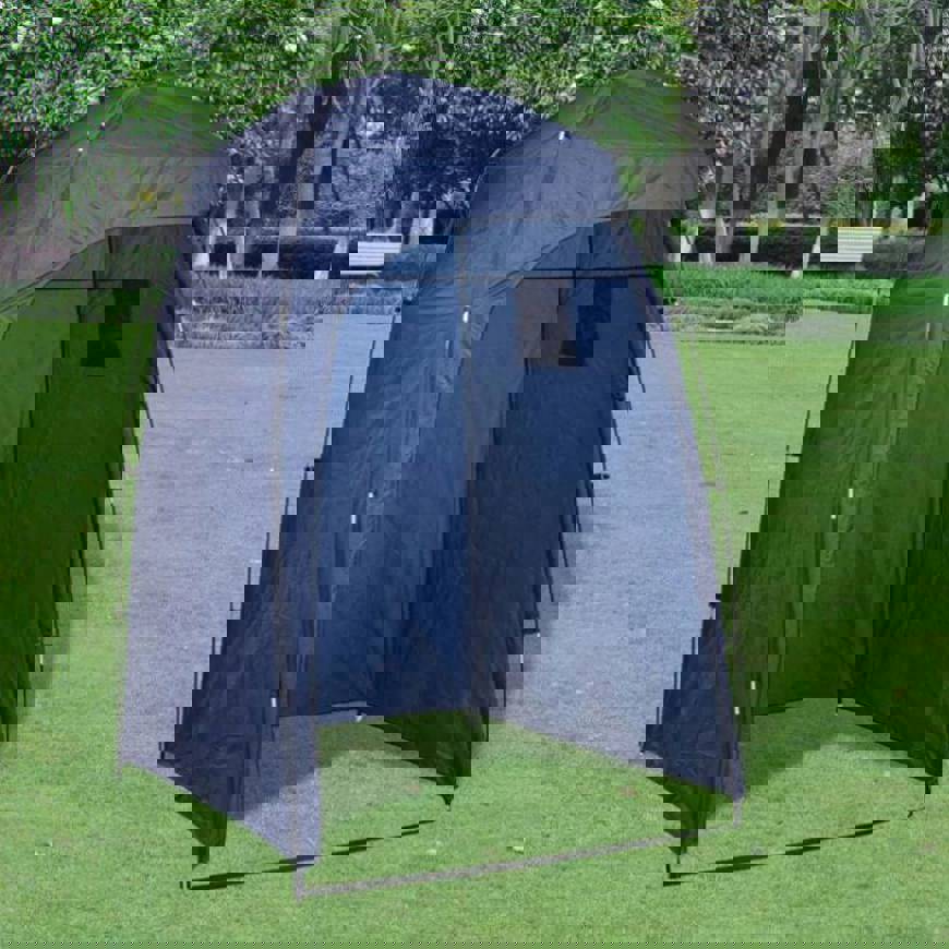 Planning a camping trip and thinking whereabouts for shower and changing during the trip? Why not bring your own ensuite shower that gives you privacy and shelter? Enjoy the outdoors in comfort! Plus a portable camping toilet, that can be placed in the tent for the privacy that you ever wanted while camping! With 10 L of freshwater capacity, it provides at least 50 flushes. Making sure your camping experience stays comfortable during the whole time! While the tent is designed with by fiberglass pole for strong structure and comes with a covered roof for extra privacy when showering or getting dressed, you don't need to worry when you're half way showering or changing in the wild! Lightweight and portable, it is also suitable for beach events, trade shows or vendors that need a portable changing room anywhere that can be easily set up. Note:The tent is designed for infrequent and short-term use (performance level 1). Although rain-resistant, these tents should be used mainly in fair weather.