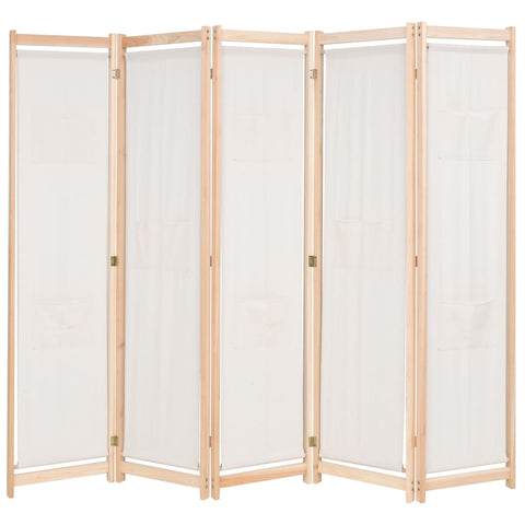 5-Panel Room Divider Cream 200x170x4 cm Fabric 247106