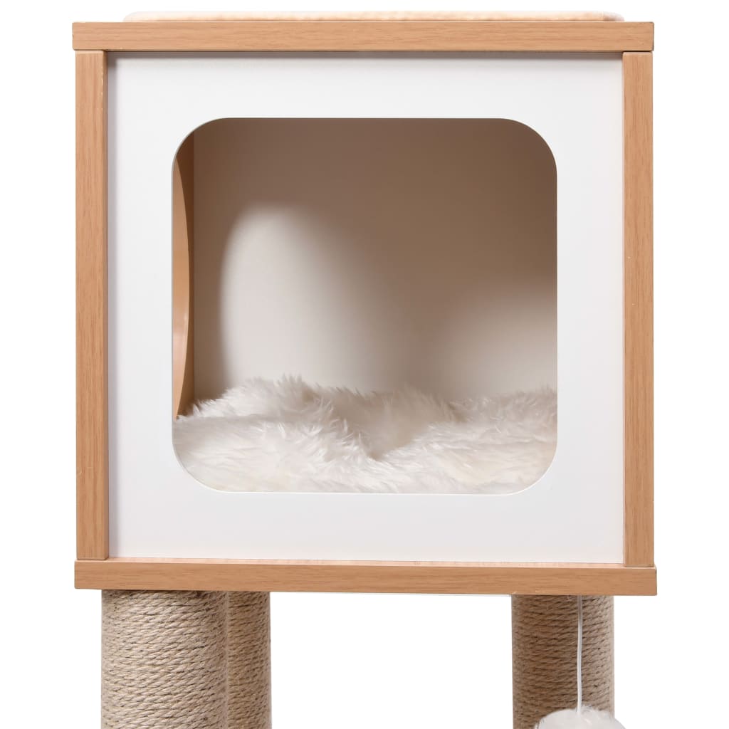 - With a house, a dangling ball, scratching jute posts, perch and relaxing areas