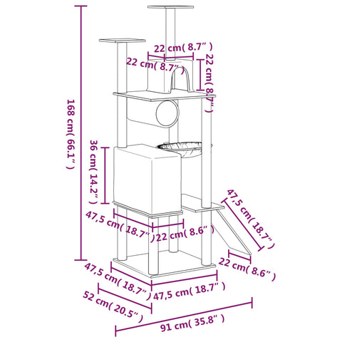 Cat Tree with Sisal Scratching Posts Light Grey 168 cm 171700