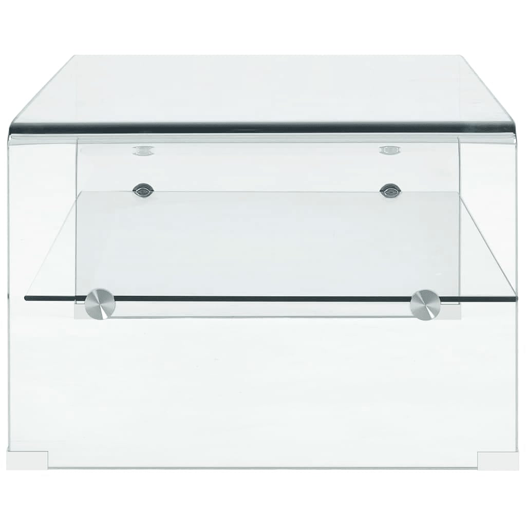 Introduce a flair of contemporary charm into your interior with this minimalist style and timeless coffee table! The coffee table is made of tempered safety glass which is safer and stronger than normal glass. Thanks to its integrated shelf, this practical coffee table will help to keep your living space free of clutter, making it perfect for books, magazines, as well as various other small items you'd like to keep within reach. Additionally, the sturdy construction enables the table exceedingly durable. Relax and enjoy entertaining your family and friends around this unique coffee table!