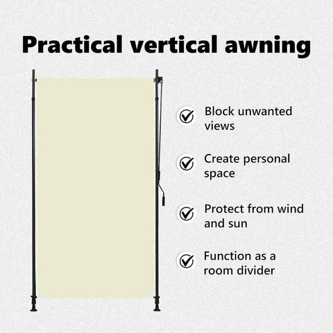 Create some privacy and shade on your balcony, patio, porch or pergola with our hand crank operated outdoor roller blind. Made of quality fabric with PA coating, it is fade resistant and can block the sun while allowing air to flow through. It can be easily rolled up and down with the hand crank operated system. This vertical blind comes with two standing posts with adjustable height from 2 to 3 m. It can fit most ceiling height and ensure easy installation. The outdoor roller blind is easy to assemble.