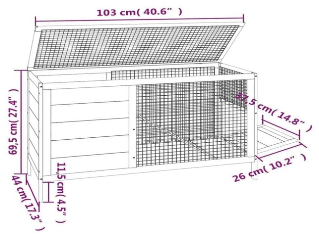Rabbit Hutch Red 103x44x69.5 cm Solid Wood Pine 172299