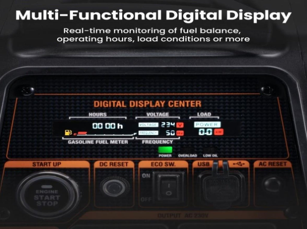 *Multi-function display: easy to monitor voltage and frequency power; display remaining fuel, which is suitable for timely fuel change; display cumulative runtime, which is suitable for later generator maintenance; display unique runtime, perfect timer function.